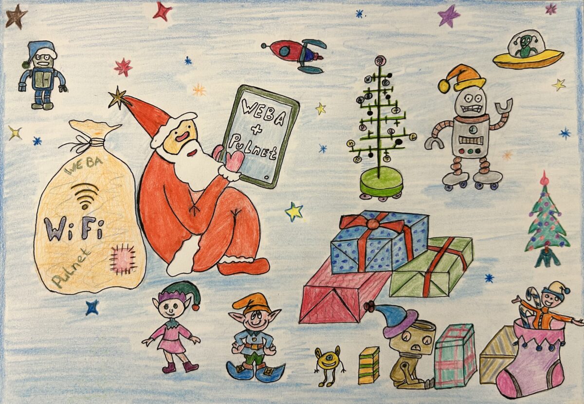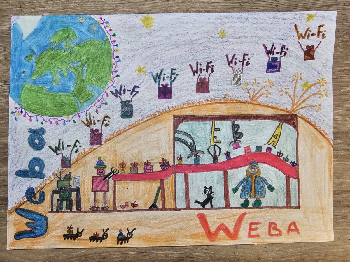 Дед Мороз и его команда во Вселенной WEBA готовят новогодние чудеса для всей галактики! Роботы-помощники сверяют в онлайне списки подарков, а звёздные эльфы отправляют их через Wi-Fi. Нарисуй, как интернет WEBA помогает команде Деда Мороза дарить радость тем, кто ждёт чудо на далёких планетах!