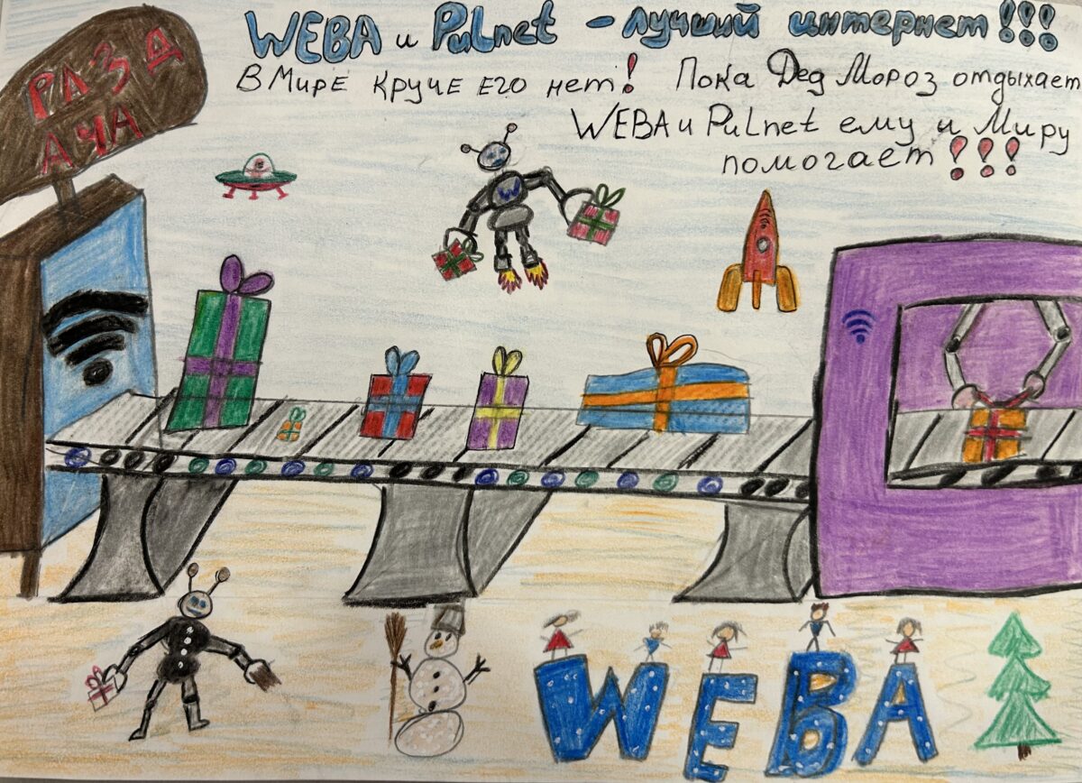 - Принимая участие в конкурсе, участник обязуется предоставить оригинал рисунка и дает согласие на его использование в демонстрационных целях (на сайте WEBA, Pulnet, на новогодней открытке Weba, Pulnet с последующей рассылкой открытки абонентам указанных провайдеров и т.д.).