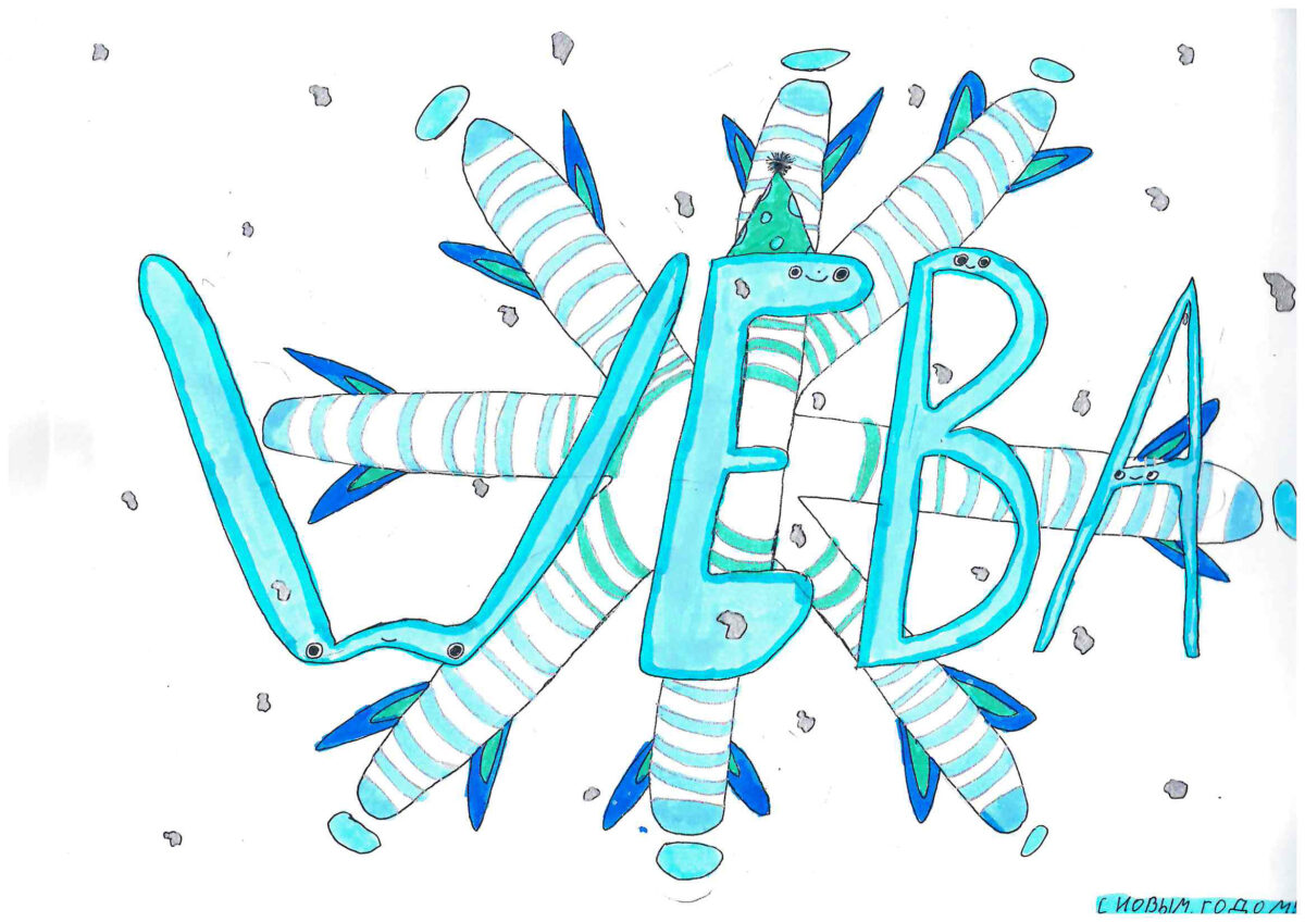 - Важные элементы рисунка (салют, шары, елка, люди, надпись WEBA и т.д..) должны быть нарисованы ближе к центру — при печати открытки обрезаются края рисунка.